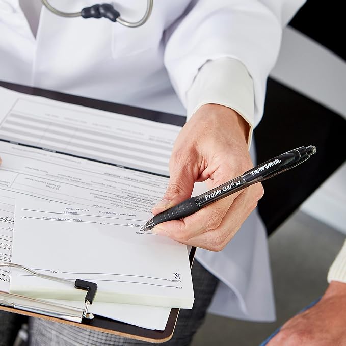 Paper Mate Gel Pen, Profile Retractable Pen, 0.7mm, Blue, 12 Count