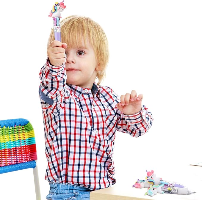 - Features: spring expansion design, convenient and fast, four colors can be easily switched, just press the top button of the pen to reset, different colors of writing experience to enhance the pleasure of writing or painting process, lovely mini unicorn head design, to adults or children bring fun, better completion of painting or writing