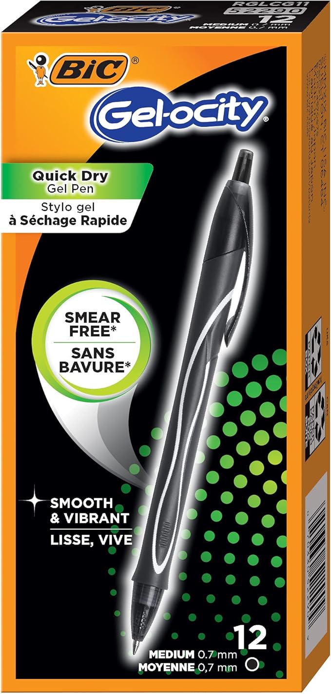 BIC Gel-Ocity Quick Dry Gel Pens, Medium Point Retractable (0.7mm), Black Ink Gel Pen, 12-Count- Pack of 18