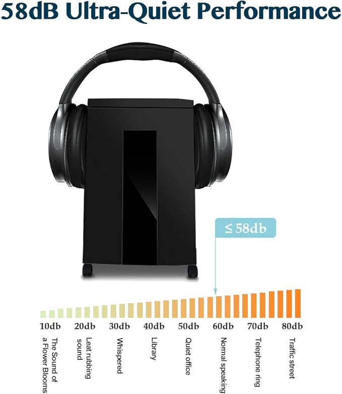 - 【Ultra-Quiet Performance】Low noise level 58dB ultra-quiet performance; 6 gallons pull-out waste bin with large easy viewing transparent window. Perfect for a home paper shredder or a quiet paper shredder for office environments.
