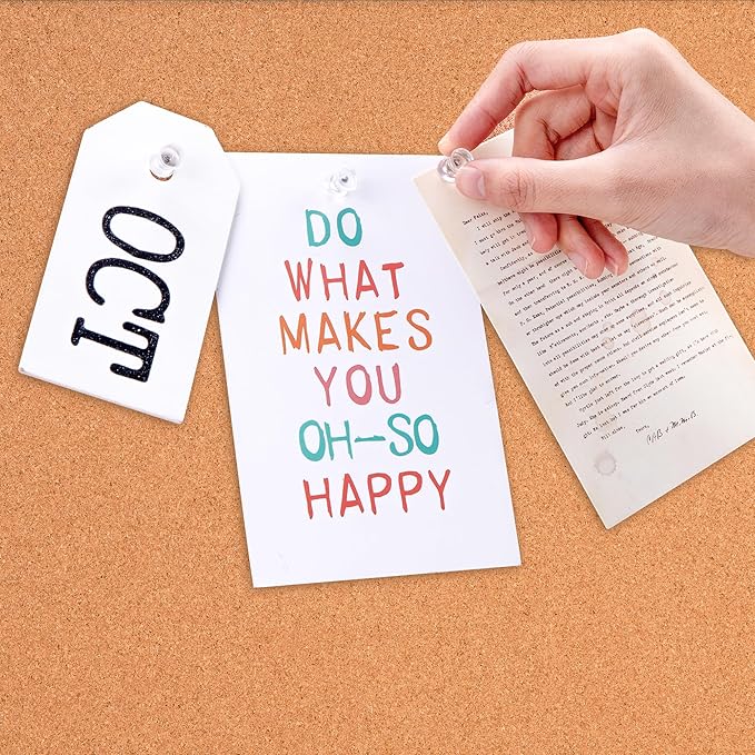 - Cork board for pinning documents, notes, pictures, reminders, and more; ideal for home or office