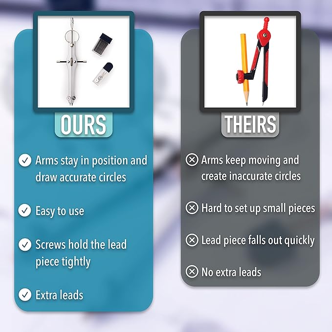 - Precision Geometry Compass With Spring Bow Head And Center Wheel Prevents Unintentional Leg Movements