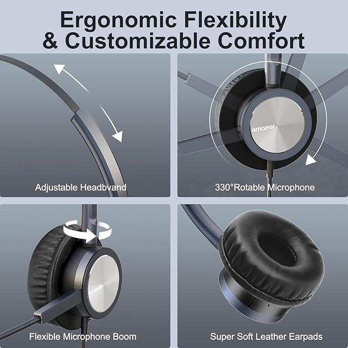 - Lightweight and comfort fit: Call center office lightweight telephone headset, wired deskphone headset with noise cancelling microphone is comfortable enough to wear for an extended period of time, no pressure on your head even for long time wearing. And adjustable headband fits for different head sizes and and flexible goose neck microphone boom offers accurate talking position. Wired over-the-head headset for Cisco deskphones with leather ear cushions keeps the noisy distractions from your attention.