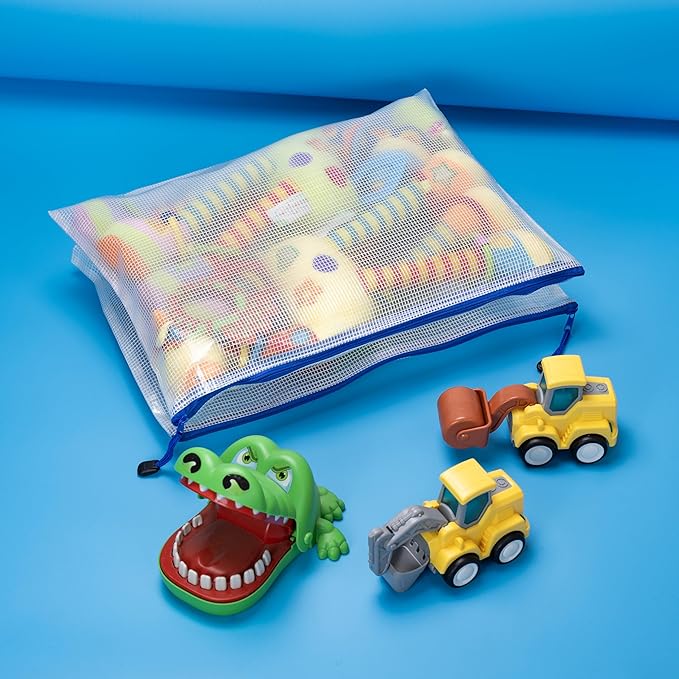 AUSTARK 20 Pcs Zipper File Bags, Plastic Mesh Pouch, Board Game Storage Bag, Waterproof Bags for Office School (B4 Size 15''x11'', White and Blue)