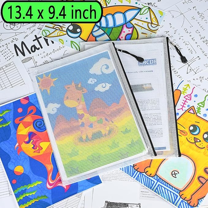 - 10 PCS Plastic zipper bags, multi-size in A3 Size 16.9''x12'', B4 Size 15''x11'', A4 Size 13.4''x9.4'', A5 Size 9.2''x6.7'', B6 Size 7.6''x5.3''. Widely used in office, school, home, hospital and travel. These pouches could meet your needs in all ways