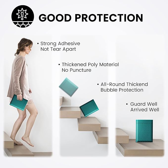 - 【Waterproof & Self Sealing】The bubble mailer 6x10 has real water resistance with strong self-adhesive, Our froest green bubble mailers is using four-season adhesive, which can maintain strong stickiness throughout the year.