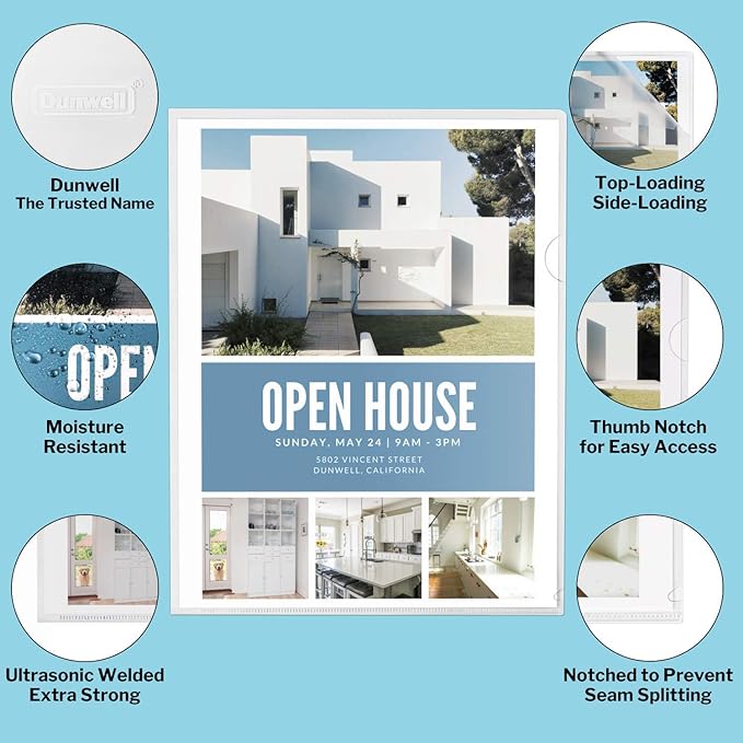 Dunwell Clear Plastic File Folder Sleeves, 12 Pack, 8.5x11 Letter Size, Acid-Free Poly Plastic