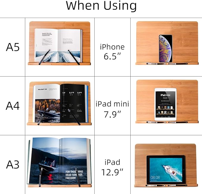 - This book holder allows you to place many kinds of size items on it, special for the iPad. It is also perfect for holding books, magazines, textbooks, Kindle, iPhone, Samsung Galaxy tablet, Huawei MediaPad and smart phones, etc.
