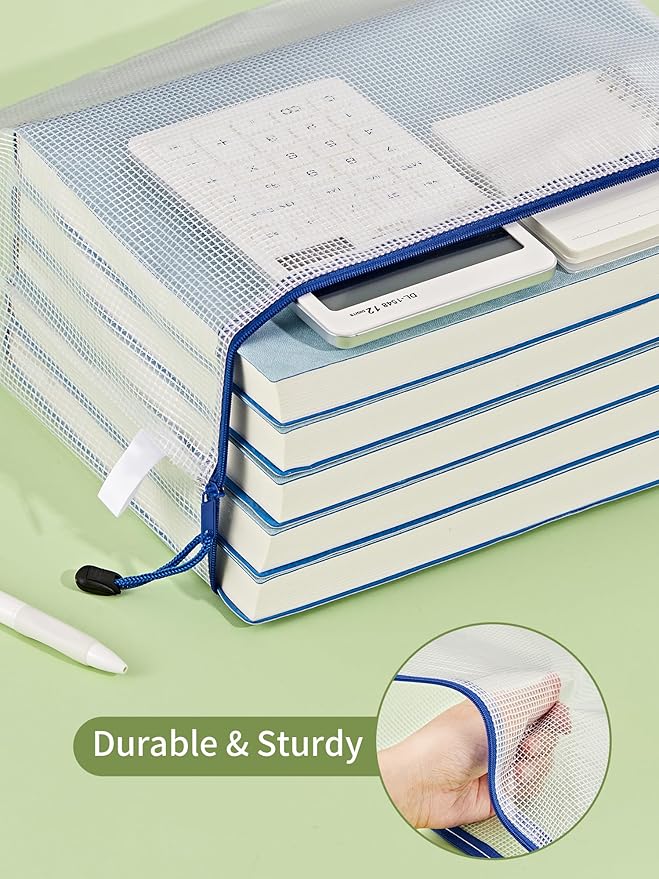- DURABLE MATERIAL: The zipper file bags are made of good-quality mesh PVC material and solid seams that ensure durability and reliability. A3 size meets your need to store some large-size documents or things.