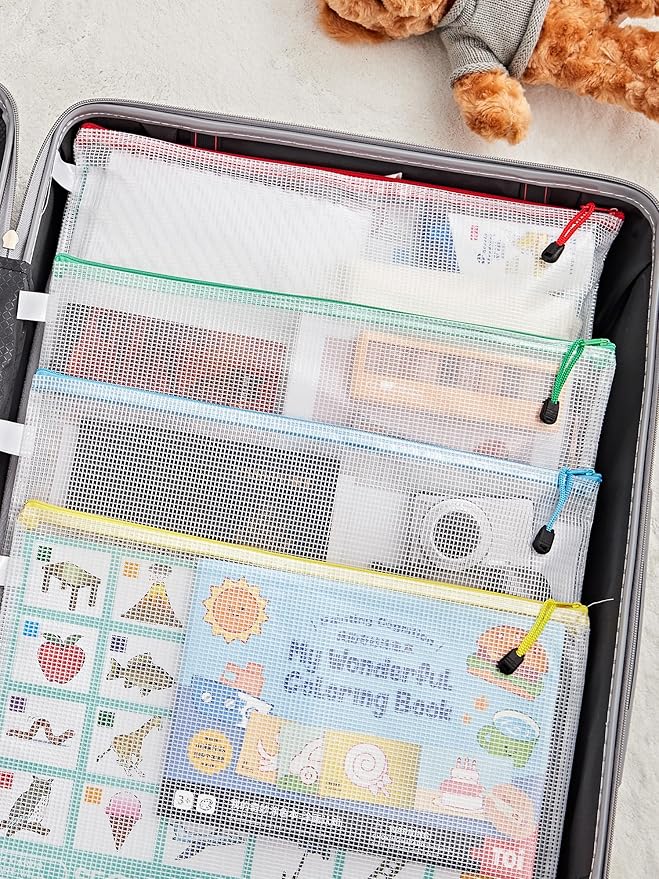 - VARIOUS COLOR: 5 different colors for you to choose from red, blue, yellow, light blue, and green. Help you partition a variety of things. At the same time, the mesh bags with zipper features moderate transparency that prevents revealing your privacy but makes you quickly identify things without opening the zipper pouch.