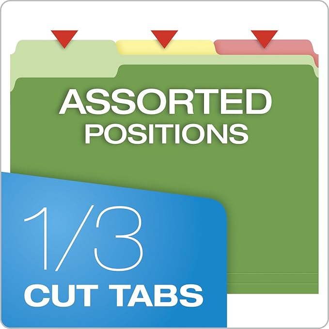 - Includes 25 letter-sized hanging folders made from 100% recycled fiber with 60% post-consumer fiber and 36 letter-sized two-tone color file folders (4 colors - red, green, yellow and blue) for organizing documents.