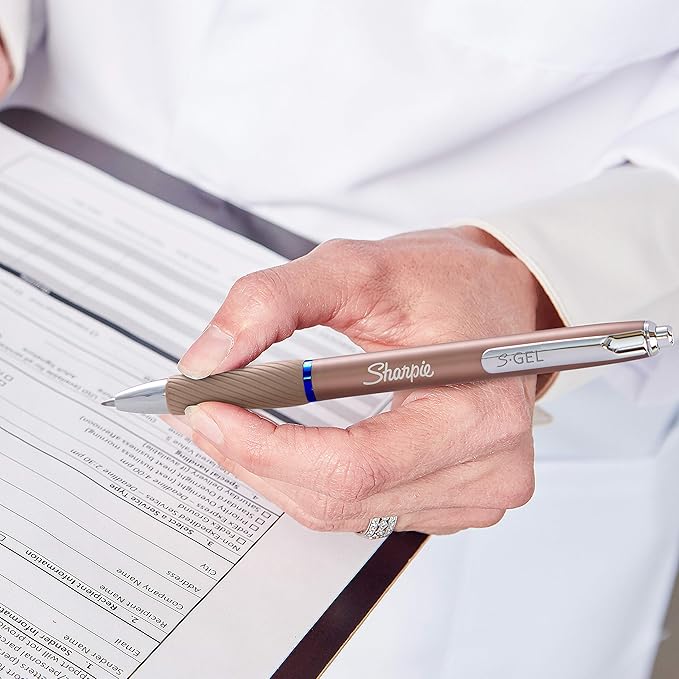 Sharpie S-Gel, Gel Pens, Sleek Metal Barrel, Champagne, Medium Point (0.7mm), Black Ink, 4 Count