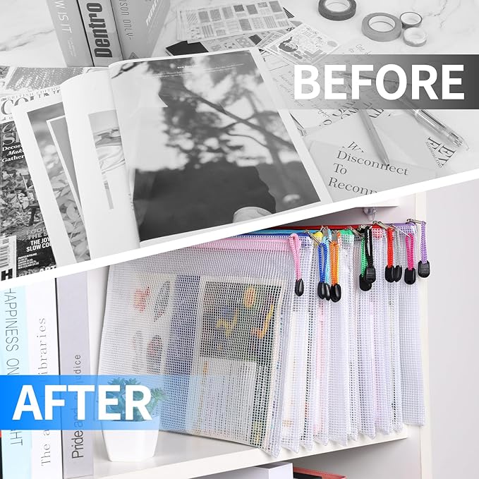 - Excellent Value Kits - 52 pcs Mesh Zipper Pouch with 12 assorted colors can help you organize and distinguish messy files, classroom items, travel storage and cloth supplies. Giving you a clean and tidy office and learning environment.