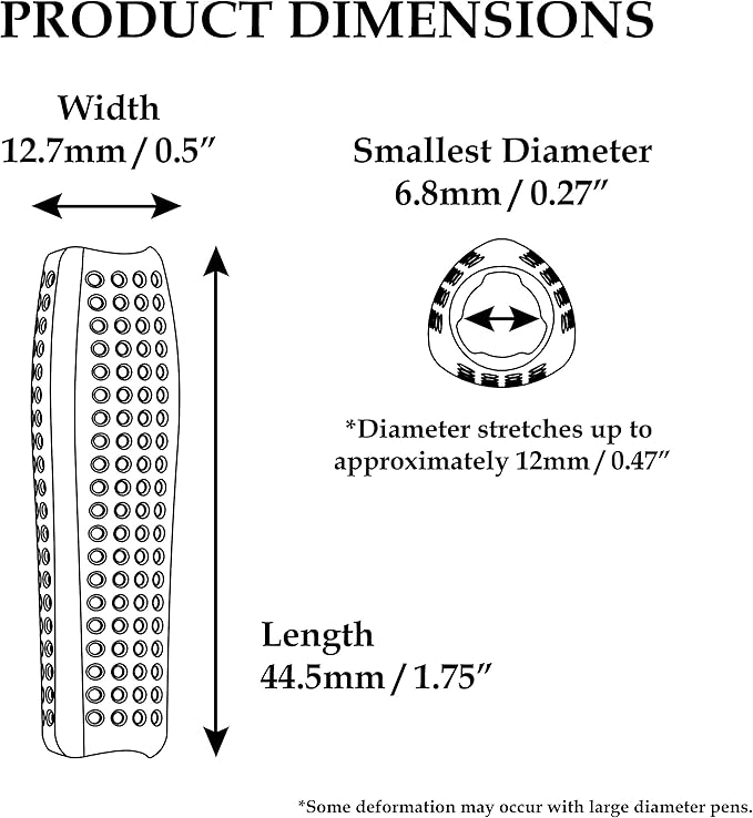- MAXIMUM COMFORT: Ergonomic, silicone grip provides supreme comfort and efficiency. Sleek, slim discreet grip is perfect for home or office, styluses, pens and pencils. WRITING TOOLS NOT INCLUDED