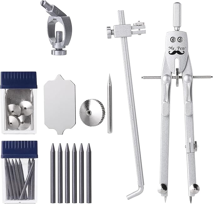 Mr. Pen- Professional Metal Compass with Wheel, Lock and Extension Bar for Geometry, Drafting, Math, Drawing, Compass for Geometry, Tool for Drawing Circles, Drawing Compass, Compass Drawing Tool