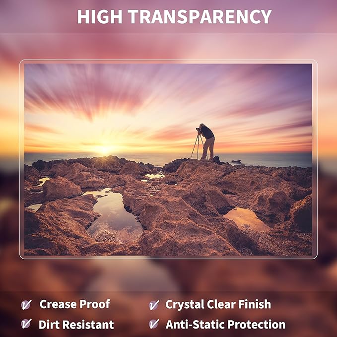 - 【High Transparency】Made from top-quality PET material, these thermal laminating pouches deliver a crystal-clear, high-gloss finish, offering vibrant visibility for photos and documents. They protect against bends, creases, and dirt, with features like crease-proof, dirt-resistant, and anti-static for dependable, lasting document preservation.