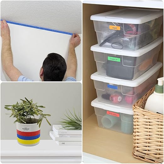 - 【Easy to Stick and Remove】The high-quality adhesive on these masking tapes holds securely on any surface without any tear or curling, and will not leave sticky traces after being removed. It also can be written on with pencil, marker