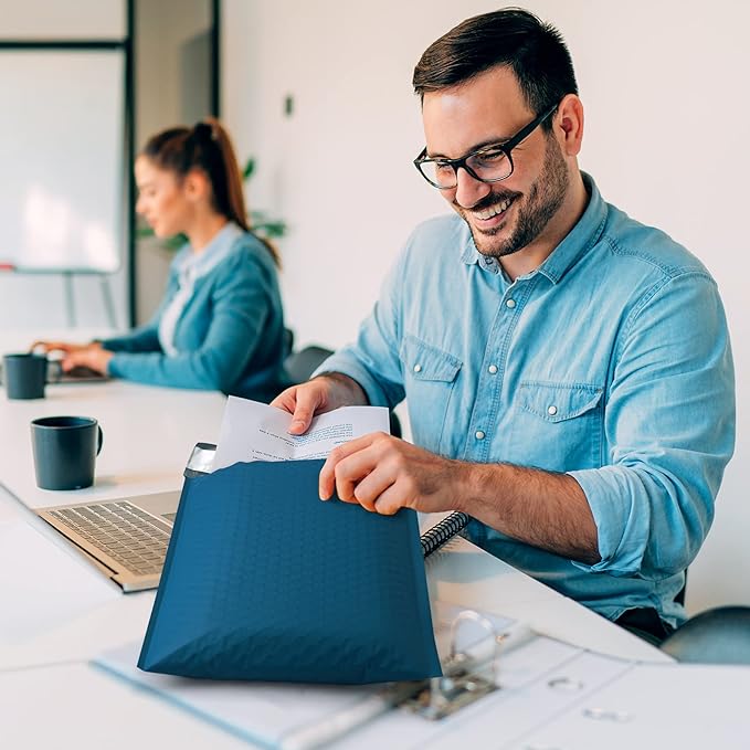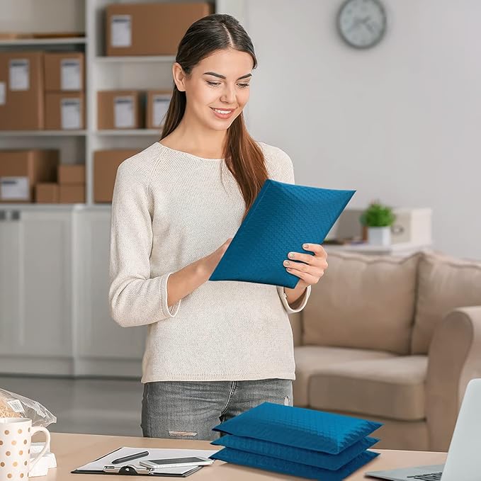 - Opaque Poly Bubble Mailers: The navy blue bubble mailers outer size is 7.25x12 inch, while the inner size is 7.25x11 inch. With full air bubbles, our bubble mailers can protect your value products from damage caused by external impacts. The inner lining is using gray film, even if there is strong light, the items in the bag cannot be seen, which can protect your privacy well