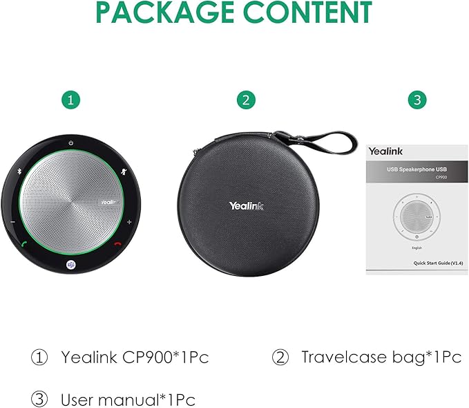 - CONTACT US WHEN ANY QUESTION---YEALINK Warranty: 30 days money back, 60 days free return, life time warranty. This Package including 1 Pc CP900 speakerphone, 1 Pc collecting zipper bag,1 Pc user manual.