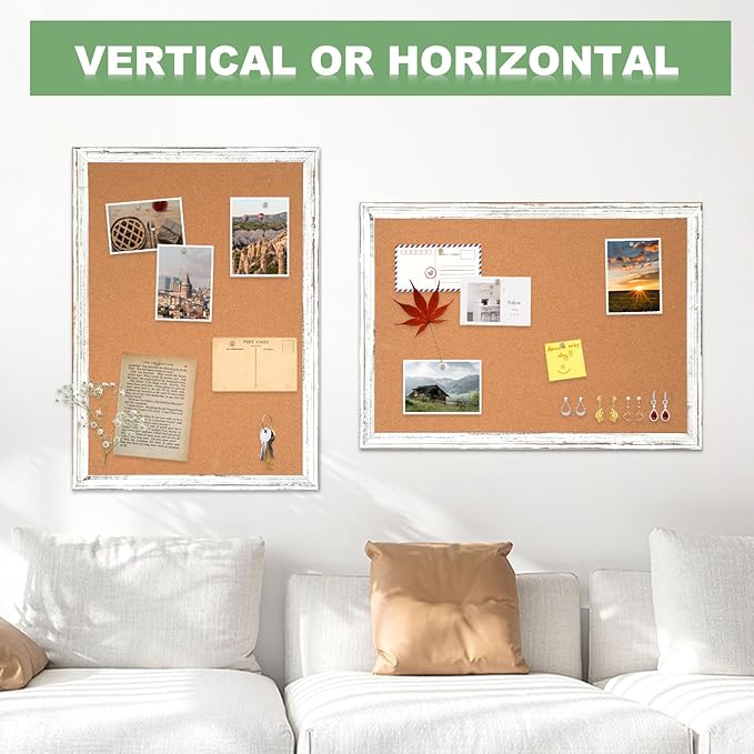 - Thick Solid Frame: Featured in a vintage-style white design, our bulletin board adds a rustic look to your room or office. Not only a bulletin board but also a perfect decoration. The thick and sturdy frame ensures a long-time use of this corkboard