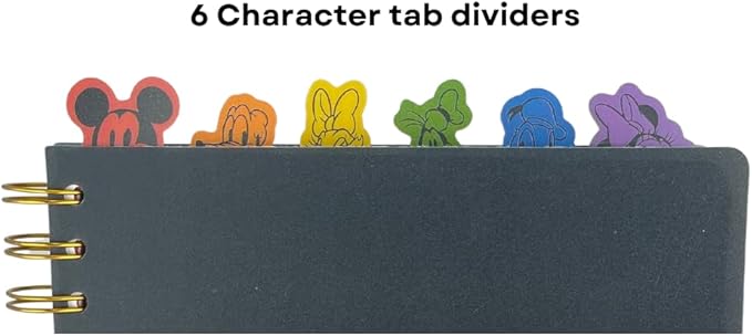 - VINYL COVER WITH 6 SEPARATORS - The protective vinyl cover is easy to wipe clean. The separators feature Mickey Mouse, Minnie Mouse, Daisy Duck, Donald Duck, Goofy, and Pluto, stick up from the top for easy flipping. Each section divider has a beautiful color illustration that looks just like movie scenes.