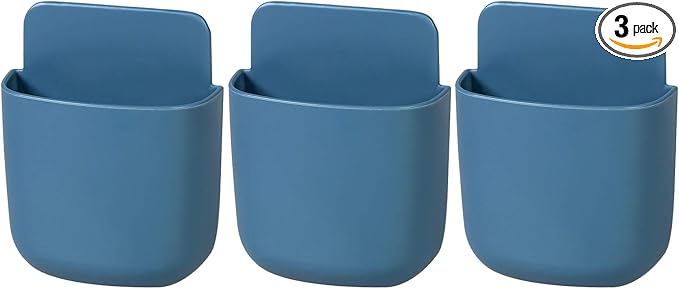 3 Pcs Remote Control Holder, Wall Mount Pen Holder Hole-Free Self Adhesive Phone Charging Organizer Pencil Storage Containers for Home Office School Supply Orgaizer (Blue