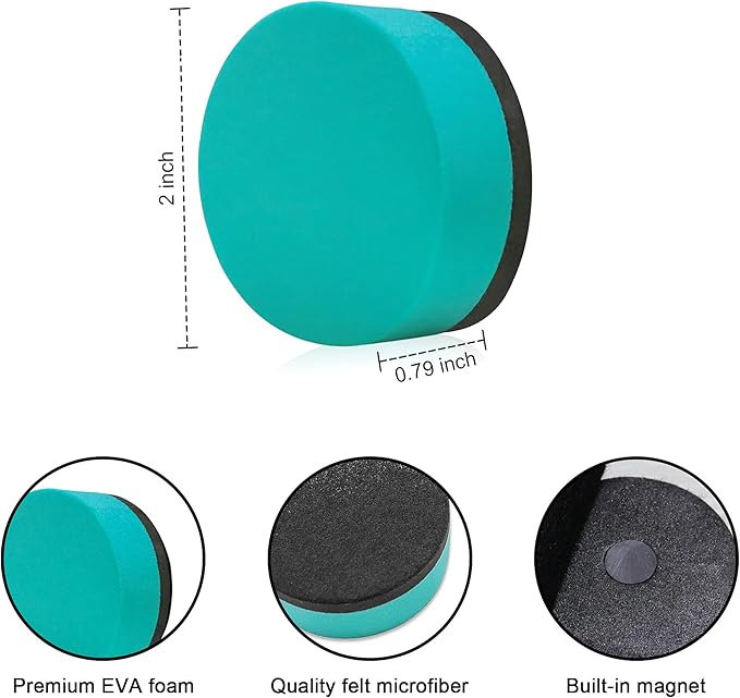 Mini Dry Erase Erasers, IHPUKIDI 48 Pack Magnetic Whiteboard Dry Erasers Chalkboard Cleaner Wiper for Kids and Classroom Teacher Supplies, Home and Office (2 x 2 Inch)