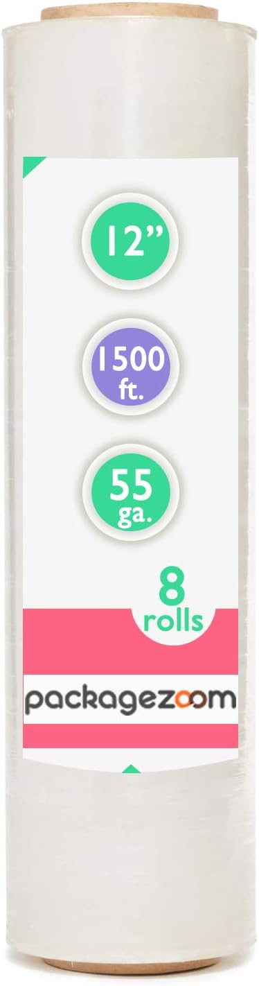 PackageZoom 8 Rolls 12" Stretch Wrap x 1500 Feet Stretch Wrap 55 Gauge Stretch Wrap Moving Supplies Stretch Wrap