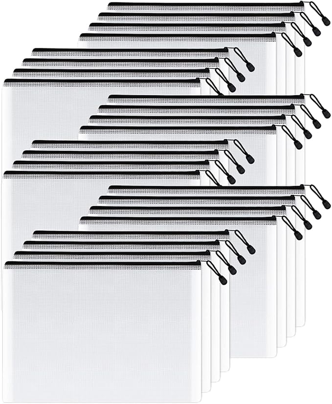 SUNEE Mesh Zipper Pouch 11x16 in (Black, 24 Packs),Extra Large Water-Resistant Zip Bag for School Office Supplies, Puzzles & Games Organizing Storage