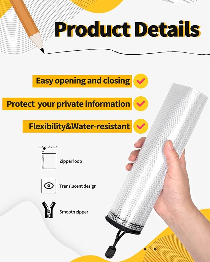 - DURABLE & PORTABLE: SUNEE zipper file bags are made of thick vinyl material, water-resistant, moisture-resistant. Each metal zipper is equipped with a rope loop, which is strong and durable. It can be used as a hanging ring and ready to hang.