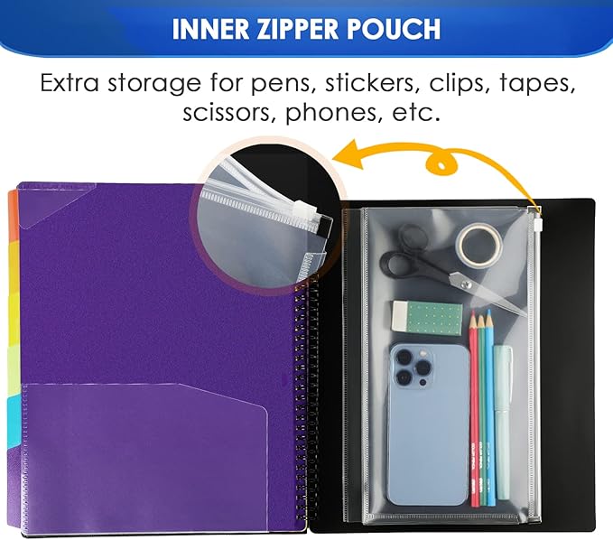 - Large Capacity Essential School Supplies- The binder organizer includes 12 pocket folders, 6 assorted dividers with 6 tabs, and 1 additional pocket on the front cover, and 1 zip pouch on the inside back cover. Dimension: 11.8 x 10 inch.
