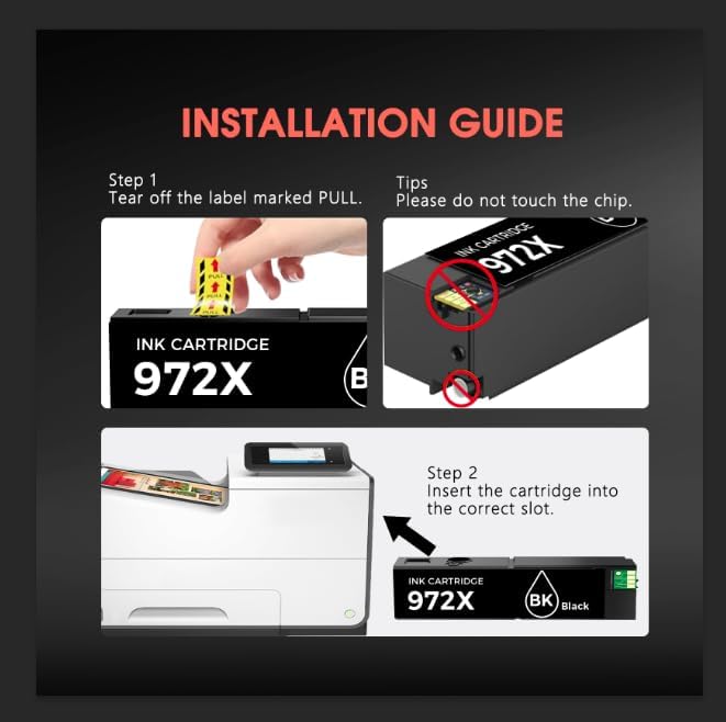 - J2INK for HP 972X Ink Cartridges Upgraded Smart Chips : 972x ink cartridge equipped with the latest smart chip to work for HP printers. No worry about the latest firmware.
