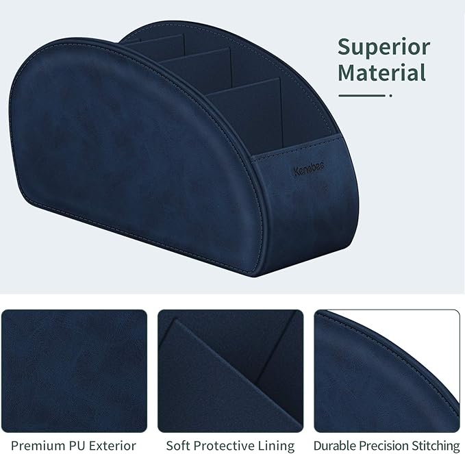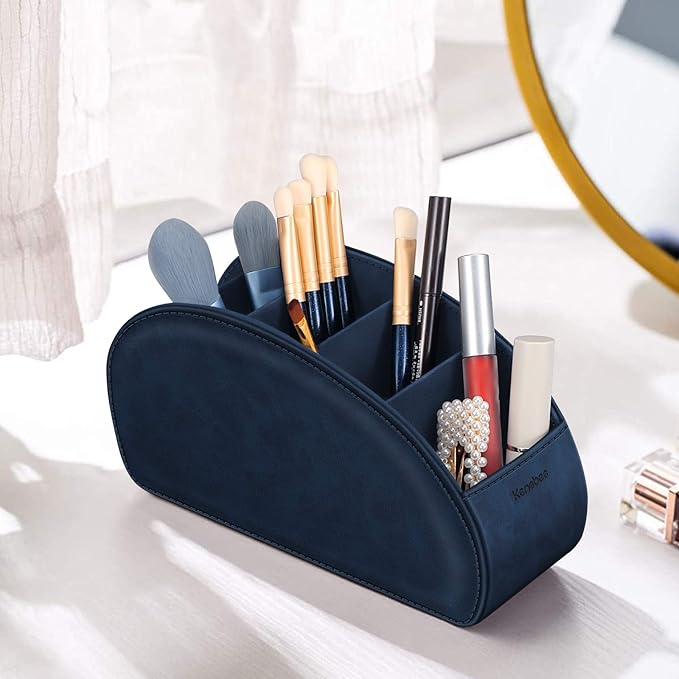 Remote Control Holder with 5 Compartments, KENOBEE Anti-slip Desktop Caddy Storage Organizer for Remote Controllers, Office Supplies, Makeup Brush, Media Accessories, Blue