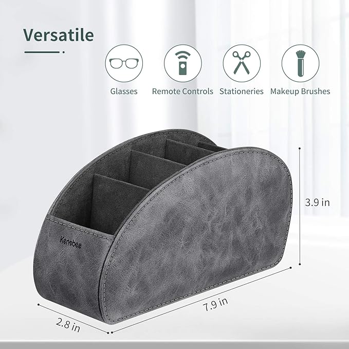 - 🎁【Get Organized】5 divided compartmens to store your TV & DVD remote controls, office supplies, pen, pencil, scissors, keys and makeup brushes or other small electronic devices. Make your home and desk more organized.