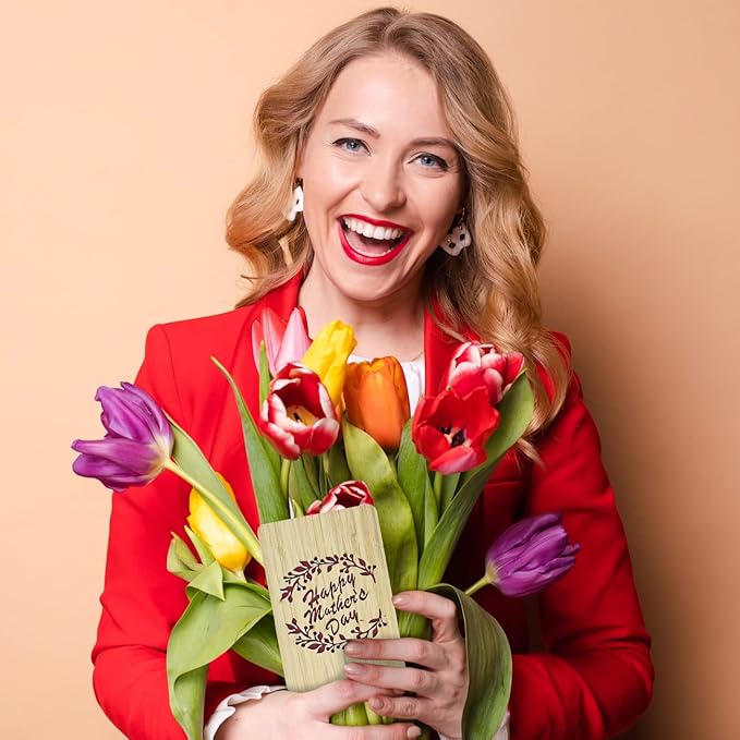Mother's Day Gifts Card from Daughter or Son,Unique Card for Mum, Handmade Bamboo Wood Greeting Cards,Wooden Mother's Day Card,Laurel mom