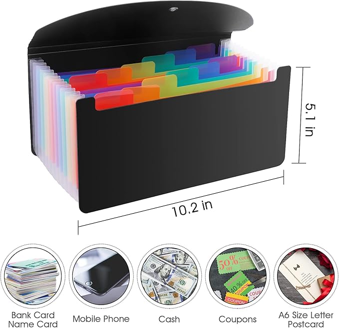 - Style : 2 Pack 13-Pockets Coupon A6 Mini Expanding Accordion File Folders