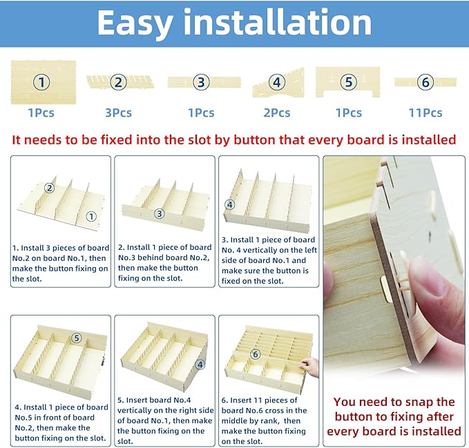 • The storage box made of high quality wood is more beautiful, stable and durable, With English installation tutorial