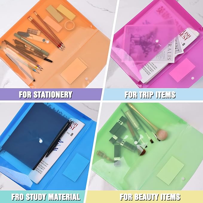 - MULTIPURPOSE : Our plastic envelopes are easy to carry, easy to store , and can be used for school, home, office work, business trips, hospitals, and governments. With such translucent designs, you can easily manage organizational files