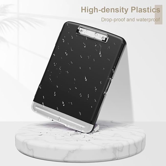 - Built to Last: Clip board with storage is made of thick plastic, high-impact, anti-fray and have a smooth surface to write on. Unique hinge-and-clasp system can withstand daily use and will not fall apart after millions of opens and closes