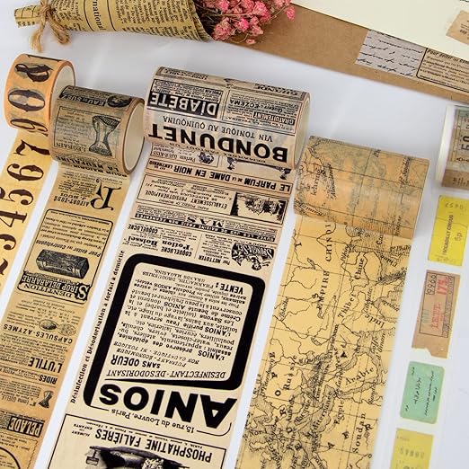 - ★[Various Vintage Designs]- A full set of 8 rolls washi tapes with different patterns.each roll is designed in nostalgic and retro styles, contains old world map, postal memory, newspaper ads, diary, tickets and more vintage designs! These nice looking retro tapes are perfect for those who love the past