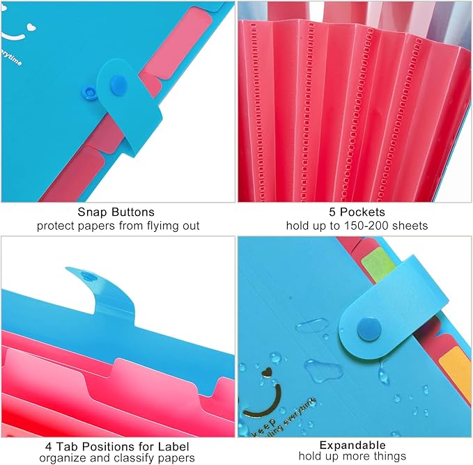 - Expand sufficiently and great capacity: This plastic accordion file folder can be expanded sufficiently and is perfect to hold lots of papers and fix a maximum of 150-200 pages. You can throw loose-leaf papers, folders, or even small notebooks in here.