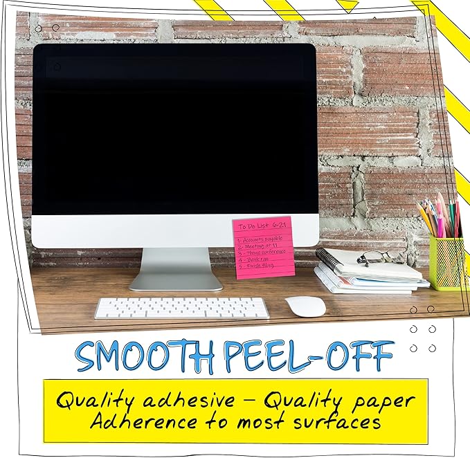 - COMPACT SIZE - Standard 3" x 3" LINED sticky notes in a 20-pack box (6 bright assorted colors), 100 sheets per pad