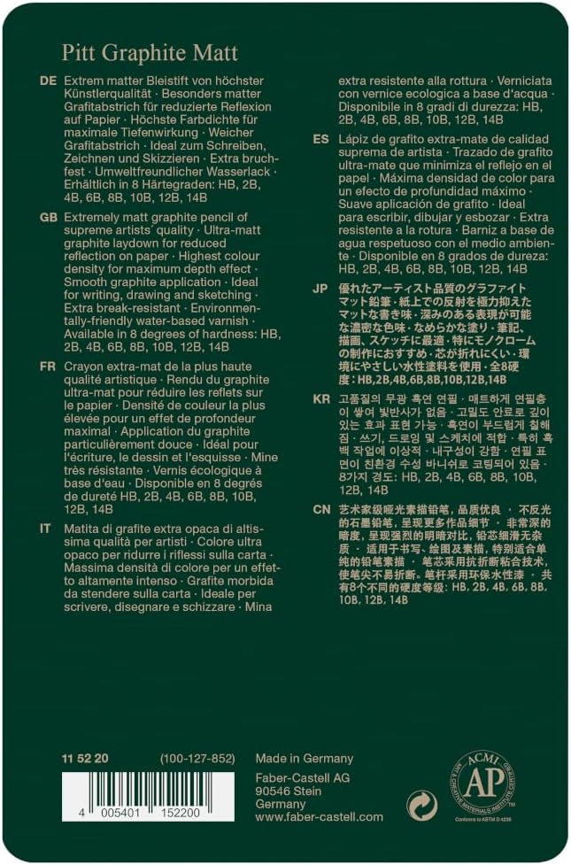 - SUPERIOR QUALITY DRAWING PENCILS - The artist quality lead is made of finely ground graphite and clay for smooth, balanced laydown. Especially suitable for monochrome graphite work, Pitt Graphite Matte is the ideal sketching pencil for endless creativity