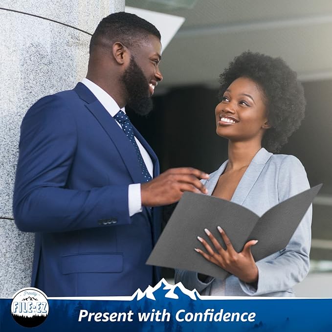 FILE-EZ Two-Pocket Folders, Dark Gray Color, 25-Pack, Textured Paper, Matte Finish, Letter Sheet Size (EZ-32531)