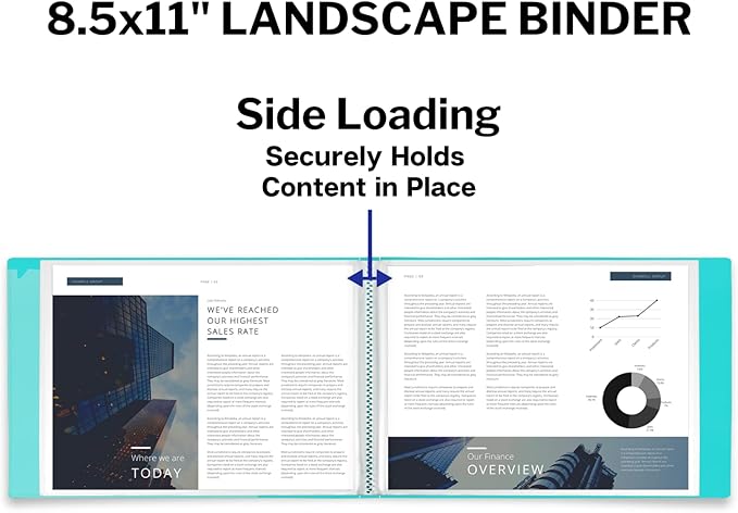 - Size and Capacity: Folder measures 12-1/4(W) x 9"(H) closed. Each pocket is 11x8-1/2" to fit 10 horizontal (landscape) orientation sheets of paper. Presentation book lies flat when open.