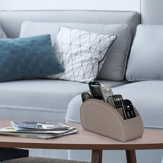 - 🎁【Get Organized】5 divided compartmens to store your TV & DVD remote controls, office supplies, pen, pencil, scissors, keys and makeup brushes or other small electronic devices. Make your home and desk more organized.