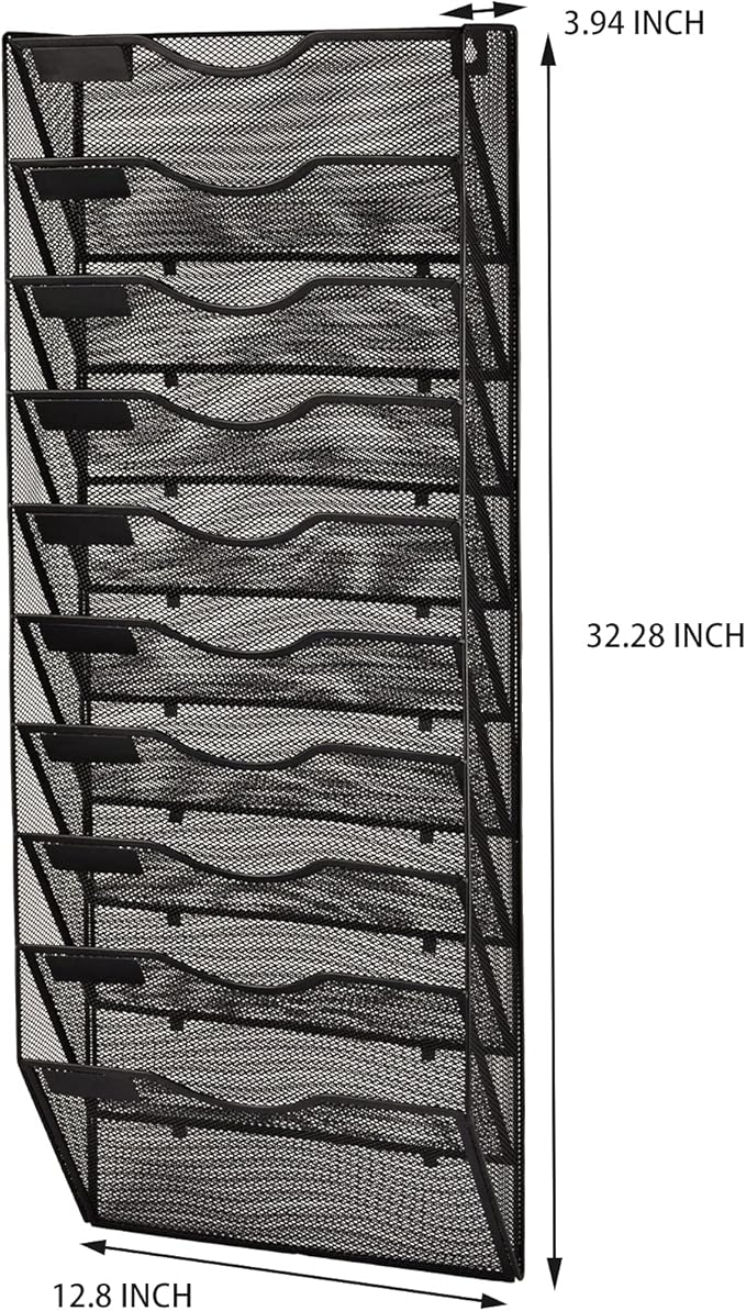 EASEPRES 10 Pockets Mesh Wall File Holder Organizer Office Hanging Magazine Rack, Black