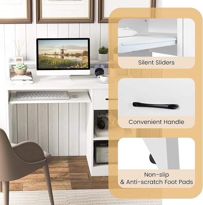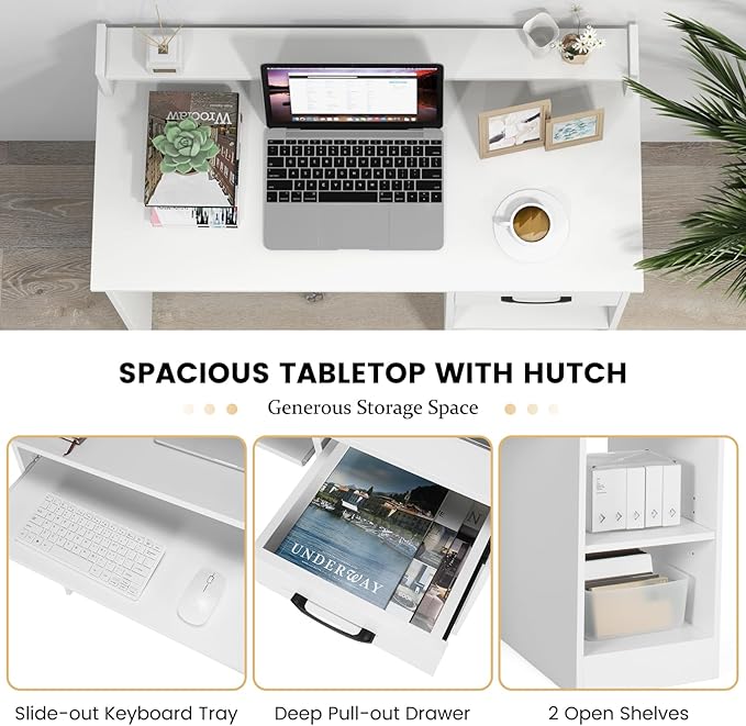 - Refined Design for Multiple Scenes:Smooth lines with white exterior design make it easy to integrate with various decoration styles. This elegant desk can be used as a computer desk, a study desk or office desk and is perfect for the living room, study, bedroom, office and other places.