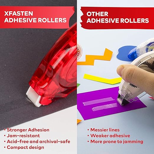 - CLEAN AND MESS-FREE APPLICATION. Unlike liquid adhesives, these double sided tape rollers do not create a mess or leave a residue. They are clean and easy to use, making them ideal for use in various environments, including schools, offices, and homes.