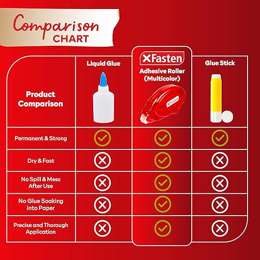 - MULTIPURPOSE MULTICOLOR ADHESIVE ROLLERS. Adhesive rollers are suitable for various materials, including paper, fabric, cardboard, and more. They can be used for projects such as scrapbooking, card making, and home decor. Available in colors red, yellow, white, and pink.